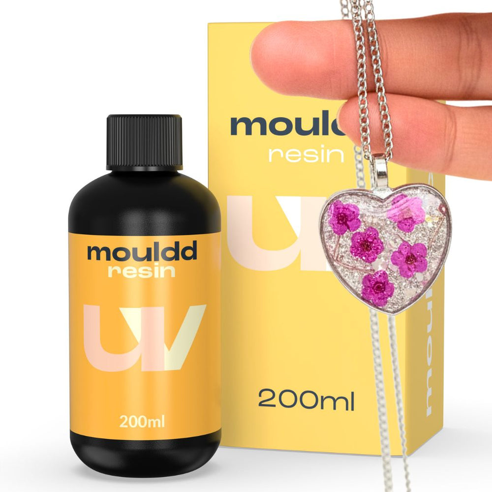 Our UV resin cures in 2 minutes under a UV light. It is best suited for small jewellery and coating small pieces like clay.
