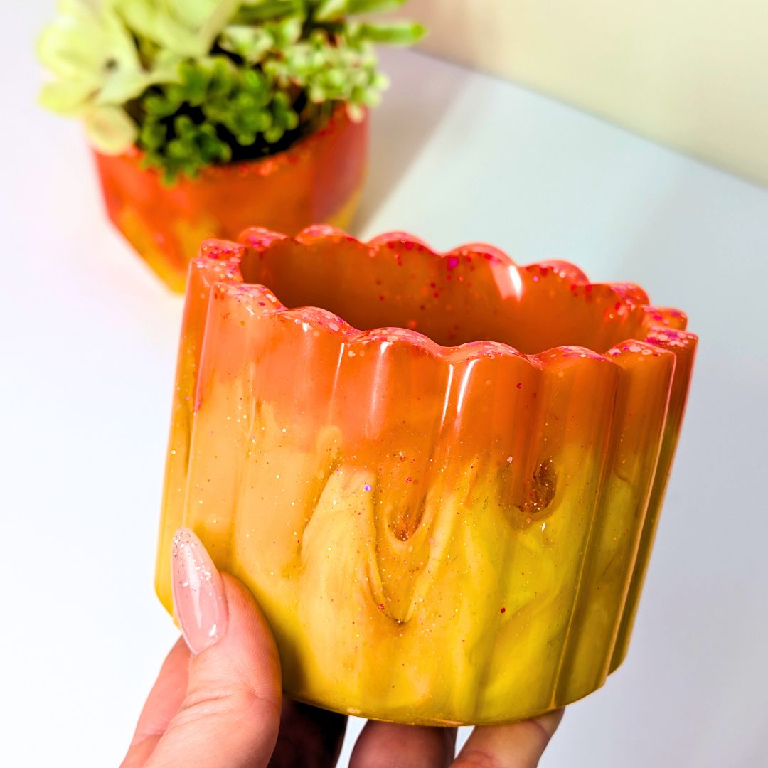 Both our deep pour and shallow pour resins are heat resistant up to 90°C, meaning it is perfect for any heat facing objects such as coasters, trays and tables.