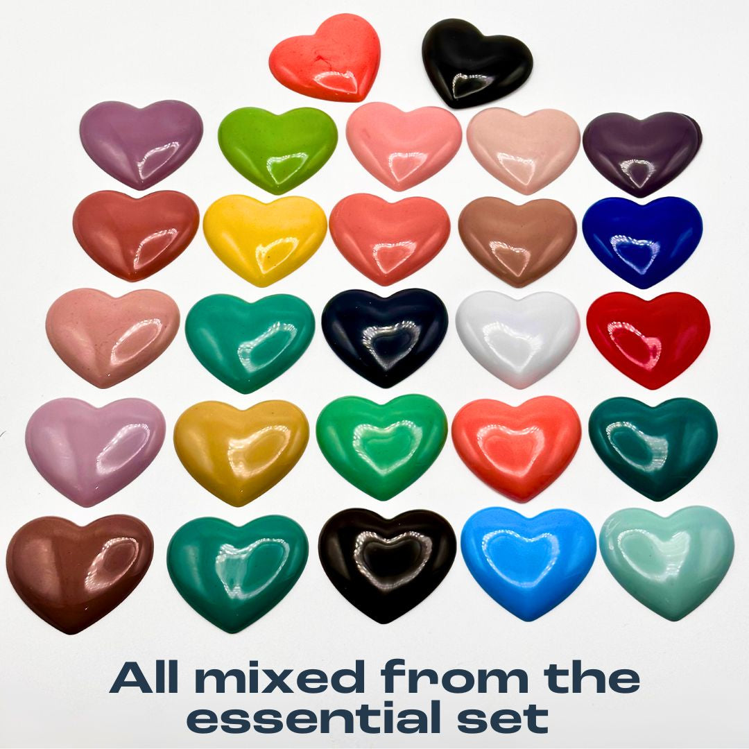 When buying the full essentials set you will get each of the following colours in a 50ml pot: