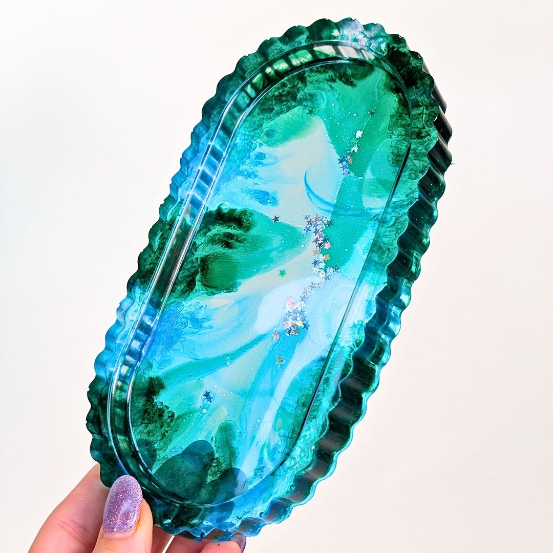 Both our deep pour and shallow pour resins are heat resistant up to 90°C, meaning it is perfect for any heat facing objects such as coasters, trays and tables.