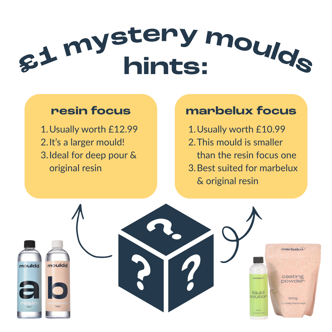 Every month we have a mould available for just £1. This month it's a choice of two mystery moulds... Available with every resin or marbelux order, discount automatically applied at cart.