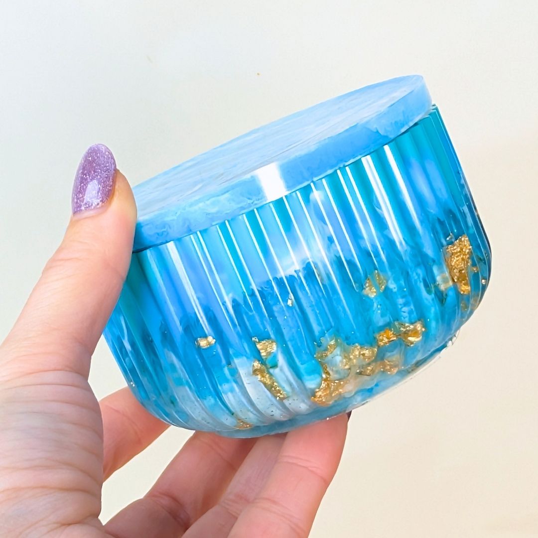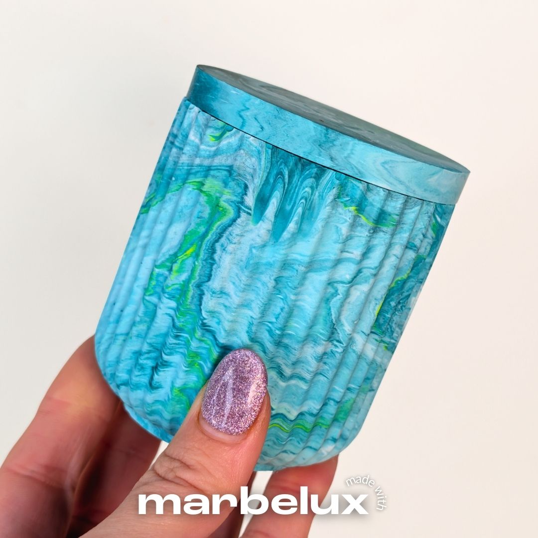 • The tall striped pot takes 150ml of resin. Poured in one go using original or deep pour resin. Takes 300g of marbelux - 225g powder + 75g liquid🎨